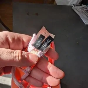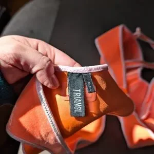 Bold orange bikini with blue accents. Triangl brand; both pieces size small.