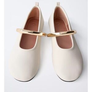 Zara Ballet flats. Adhesive strap closure with metallic detail. Flexible insole. Rubber sole