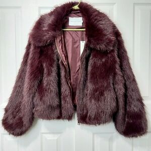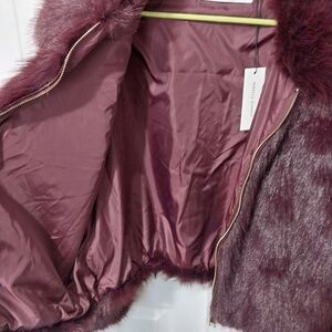 Rebecca Minkoff Fuax Fur Coat, Burgundy, NWT, Size L