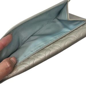 Coach Quilted C Soft Leather Tri Fold Wallet Silver Pewter Grey Snap Zippered