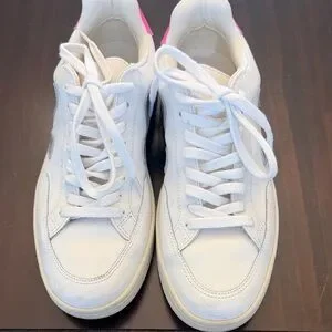 Veja Women's White and Pink Sneakers with Gray Accents