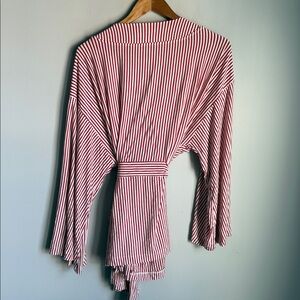 LAKE Pajama DreamModal Kimono Robe Wrap Top Red and White Striped XL