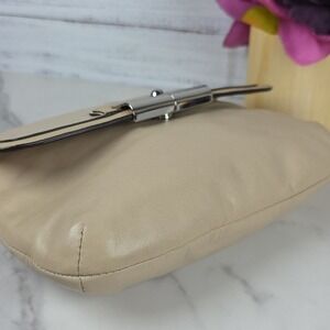 #0156 Coach brand, Kristin style, cream beige color, cross body bag, small bag, no creed #, silver tone hardware, very stylish, can be wear all time . Excellent pre owned condition, Approximately measurements: H 7 ", W 9.5", D 1 ". satin lining Note : very light stain inside of lining.
