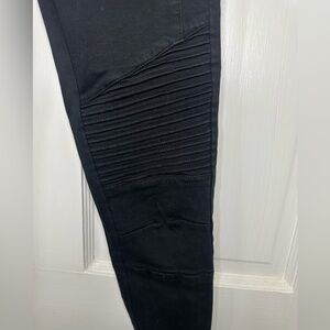 Chic black skinny jeans with stylish zipper accents. Perfect for a sleek, modern look.