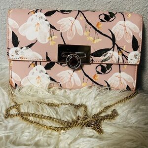 Ted Baker Floral Pink Gold Hardware Clutch Chain Crossbody Bag New