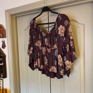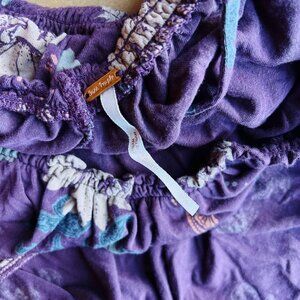 Dreamy, romantic Free People top with a rich purple base and oversized floral print. Features a flattering scoop neckline, smocked empire waist and flowy peplum hem. The back has a dramatic low scoop with an adjustable tie detail for a customizable fit. Lightweight and drapey with signature Free People boho vibes.