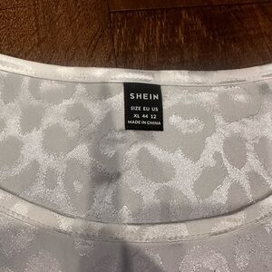 Stylish white tee with leopard print. Short sleeves. Perfect for casual wear.