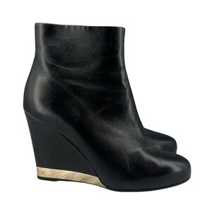 Chanel boots, Chanel wedge boots, black leather ankle boots, designer wedge booties, gold CC boots, luxury boots, Italian leather boots, Chanel 38, classic black boots, fall winter boots