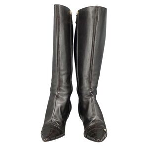 Chanel boots, brown leather boots, knee high boots, pointed toe boots, designer boots, kitten heel boots, vintage Chanel, luxury boots, runway boots, Italian leather boots