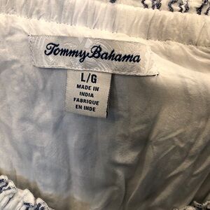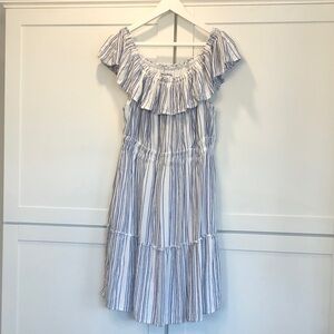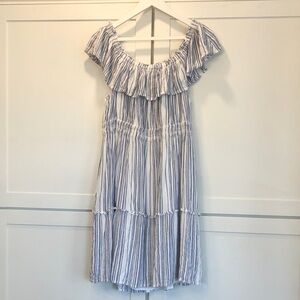 Tommy Bahama Blue and White Striped Off Shoulder Midi Dress