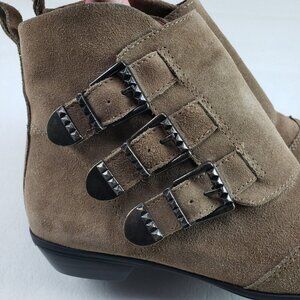 Schutz Buckle Suede Ankle Boot Womens 9 Brown Side Zip Biker Bootie