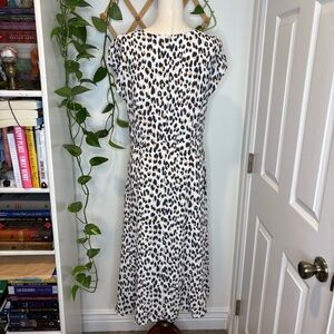 LOFT Leopard Print Flutter Sleeve Midi Dress