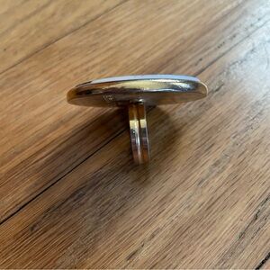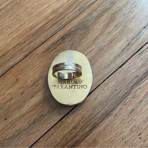 City Girl LA Tarina Tarantino adjustable statement ring. Currently size 7, very adjustable in either direction. Black and white graphics with gold tone band and back. Some tone loss to the gold, but pretty well hidden while wearing. Top of ring still looks great.
