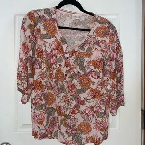 Knox Rose Pink and Orange Floral Blouse