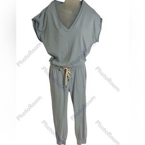 N:Philanthropy Roll Sleeve Power Blue Tie Waist Jogger Jumpsuit Size Small