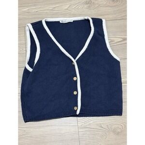 Abercrombie & Fitch Mara Button-up Sweater Vest Navy B /w White Trim Size Medium