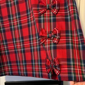 Stylish red plaid dress featuring charming bow accents. Perfect for any occasion. NWOT. Ended up not wearing, but had taken tags off.🙄
