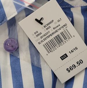NWT Ashley Stewart Striped Midi Shirt Dress Sleeveless Rayon Blue & White 14/16