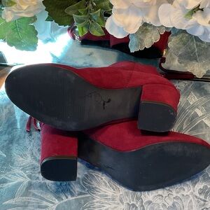 Chic and bold burgundy suede ankle booties. Perfect for elevating any outfit. Comfortable and stylish, excellent condition!