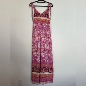 Chic floral jumpsuit. Sleeveless with tie straps. Flowy wide-leg design. Perfect for casual outings.