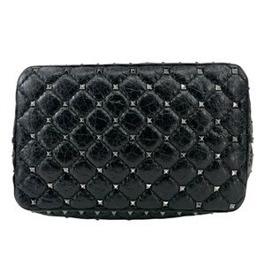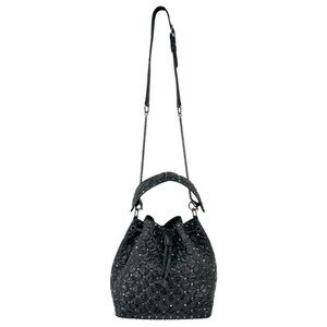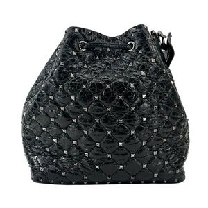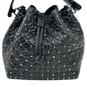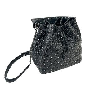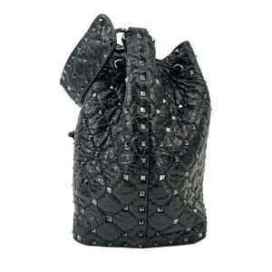 Valentino Garavani Black Rockstud Spike Leather Studded Bucket Bag Crossbody