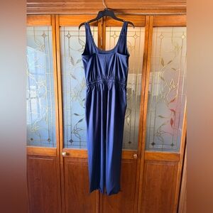 Chic deep blue jumpsuit with a sleeveless design. Features an elastic waist for a flattering fit.