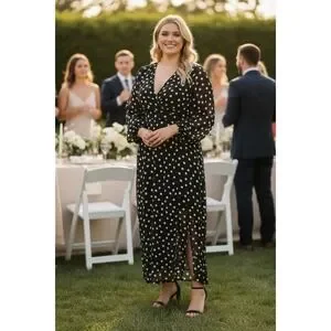 Ava & Viv Women's Balloon Long Sleeve Maxi Shift Dress Lightweight Polka XXL 2XL
