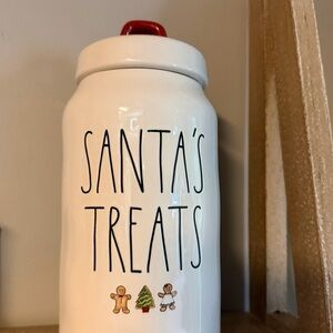 Rae Dunn Santa's Treats Jar - White with Red Lid