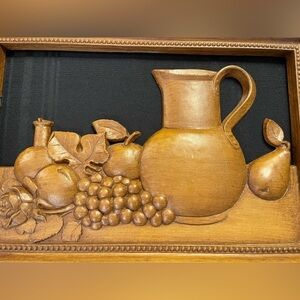 Syroco 1972 wood look pitcher & fruit rectangular wall art 16” x 11”. Rare find!