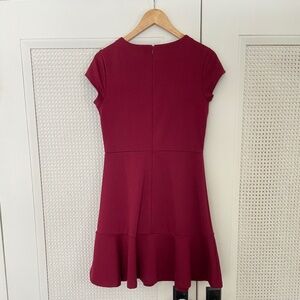 Burgundy/berry red colour. Feels similar to a soft, scuba knit fabric--thicker than jersey but just as stretchy. Cap sleeve, skater style, above the knee length. Zip closure. Like new. Gap brand.