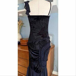 Vintage Y2K Cascadei Black Velvet & Chiffon Evening Dress Asymmetric Whimsy