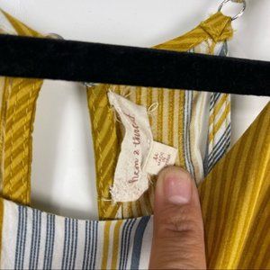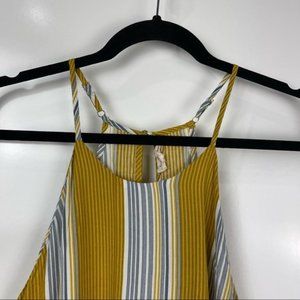 Hem & Thread: Striped Sleeveless Halter Dress, Mustard/Blue, Medium
