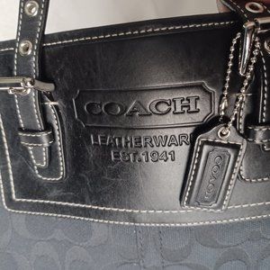 Elegant Coach tote with signature logo. Features sturdy handles and gold-tone hardware. Perfect for everyday use. *EUC*