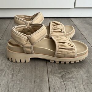Edythe takes chunky to the extreme with her ribbed, elevated sole. These sporty chic sandals are sure to be an instant classic.