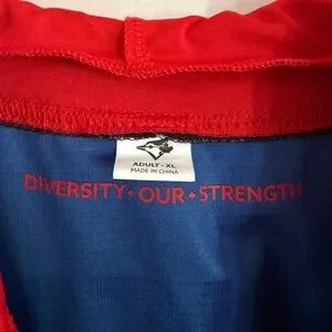 Blue Jays hoodie shirt featuring a bold black, blue and red design. Promotional giveaway merch from March 28 2025 game.