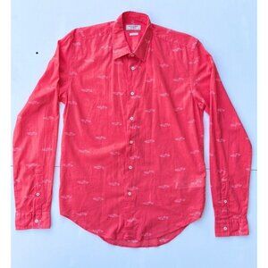 Zara Man printed Coral Short Sleeve Slim Fit Shirt Size Small