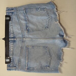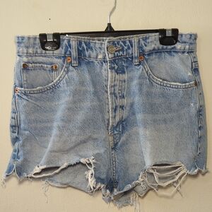 Zara Micro Denim Shorts High Waist Button Fly 100% Cotton Fray Hem Women Size 12