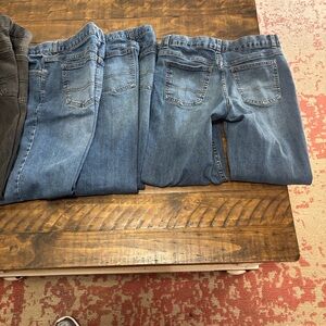 All the same size and style. 3 pair of blue and 1 black only worn a few times before my son out grew them in length. Size 14 regular with elastic button sides if needed. Good condition 4 pairs and comes from smoke free home!