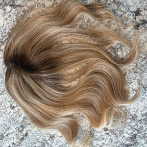 The Original Topper is designed to provide instant coverage for areas experiencing hair thinning, especially around the crown and parting. With a length of 16 inches and 85 grams of hair, it features a breathable 5.5" x 6.5" mesh base and four secure clips to ensure a comfortable fit that stays in place throughout the day. This topper blends seamlessly with the Halo® Extensions to create a complete, voluminous look or can be worn alone for more targeted coverage.
