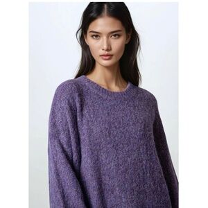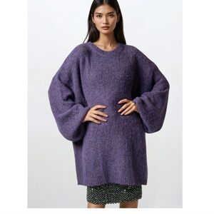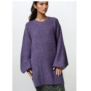 NWT - KATE HEWKO Heathered Purple Knit Balloon Sleeve Sweater - One Size.