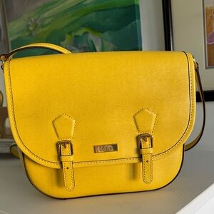 Lauren Ralph Lauren Yellow Leather Crossbody Messenger Bag