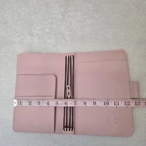 Interior: Features four elastics to hold multiple notebooks/inserts, a secretarial pocket on the left, and a full-length pocket on the right.