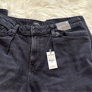 Express Mid Rise Washed Black Pleated Baggy Tapered Jeans 8R