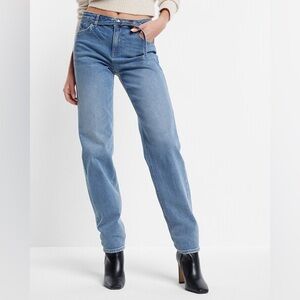 Express Mid Rise Medium Wash Belted Baggy Tapered Jeans 8R