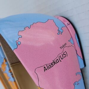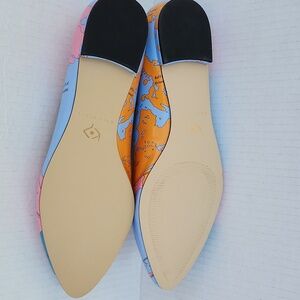 NWOT A fun Katy Perry map print ballet/flat in "The Sister" style with a pointed/rounded toe and 1/4" heel. The print is a partial map of the US and Canada in shades of blue, pink and orange. These are a faux patent leather with a cushioned insole. They measure approx 10" on the insole from heel to toe point. A gorgeous statement shoe to pair with cropped slacks, dress, skirt or they will complement your boho style! Thanks for looking!