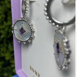 These Bomb Party earrings feature a dazzling combination of silver and purple, perfect for elevating your style with elegance.