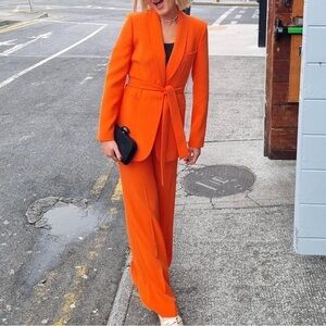 Zara Orange Belted Tuxedo Blazer & Pants Set – Blazer L / Pants XL