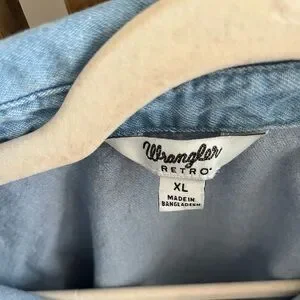 Wrangler Women’s Embroidered Boyfriend Western Snap Denim Shirt XL. Worn and washed maybe twice. See images for full item description.