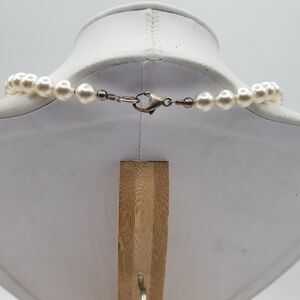 Faux Pearl Glass Bead Necklace Silver Heart Charm Boho Artisan Sweetheart Vtg