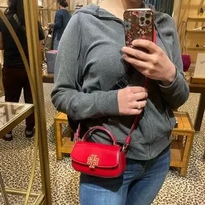 NWT Tory Burch Britten Mini Top Handle Patent Leather Crossbody in Bartlett Red